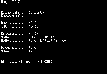 | FiLENAME: | Maggie.German.2015.AC3.BDRiP.x264-EXQUiSiTE.mkv |