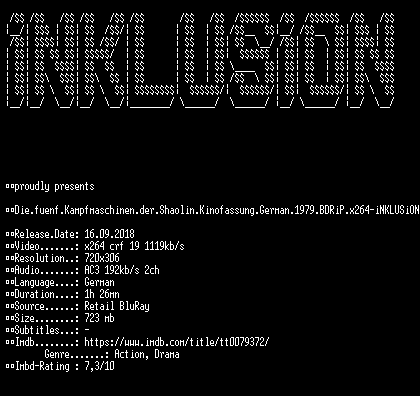 | FiLENAME: | Die.fuenf.Kampfmaschinen.der.Shaolin.Kinofassung.German.1979.BDRiP.x264-iNKLUSiON.mkv |