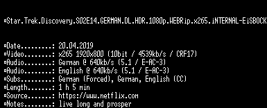 | FiLENAME: | Star.Trek.Discovery.S02E14.GERMAN.DL.HDR.1080p.WEBRip.x265.iNTERNAL-EiSBOCK.mkv |