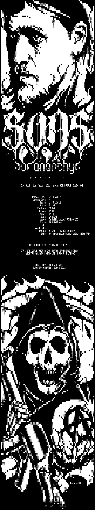 | FiLENAME: | Die.Nacht.der.Jaeger.2011.German.AC3.DVDRiP.XViD-SONS.avi |