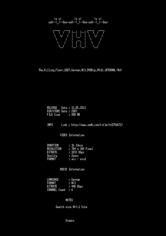 | FiLENAME: | The.Killing.Floor.2007.German.AC3.DVDRip.XViD.iNTERNAL-VhV.avi |