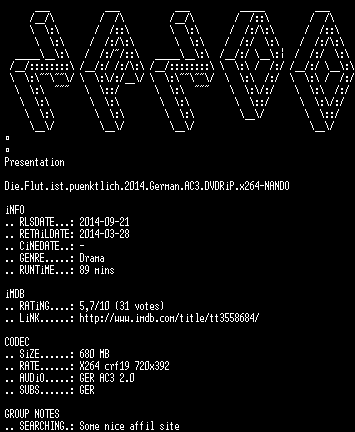 | FiLENAME: | Die.Flut.ist.puenktlich.2014.German.AC3.DVDRiP.x264-NANDO.mkv |