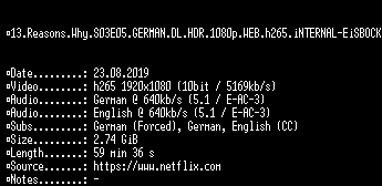 | FiLENAME: | 13.Reasons.Why.S03E05.GERMAN.DL.HDR.1080p.WEB.h265.iNTERNAL-EiSBOCK.mkv |