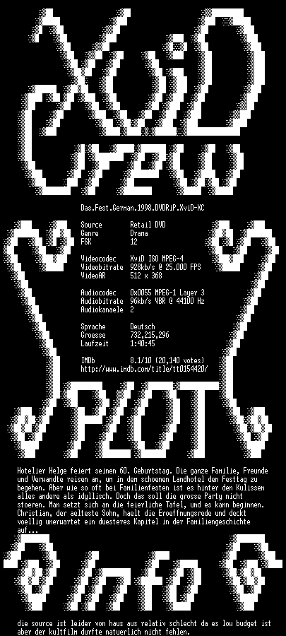| FiLENAME: | Das Fest (1998) [GER FS DVD].avi |