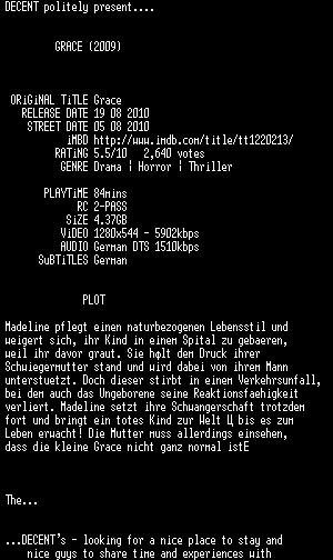 | FiLENAME: | Grace (2009) [GER-dts 720p BD].mkv |
