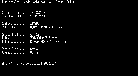 | FiLENAME: | Nightcrawler.Jede.Nacht.hat.ihren.Preis.German.BDRiP.x264-EXQUiSiTE.mkv |