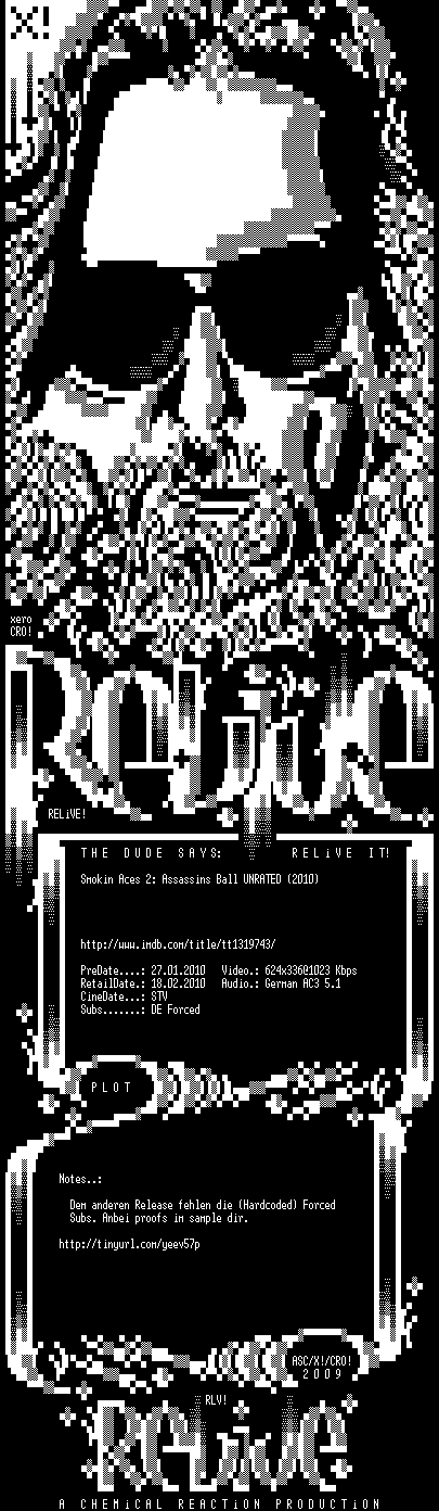 | FiLENAME: | Smokin.Aces.2.Assassins.Ball.UNRATED.German.2010.PROPER.DVDRip.XviD-RELiVE.avi |
