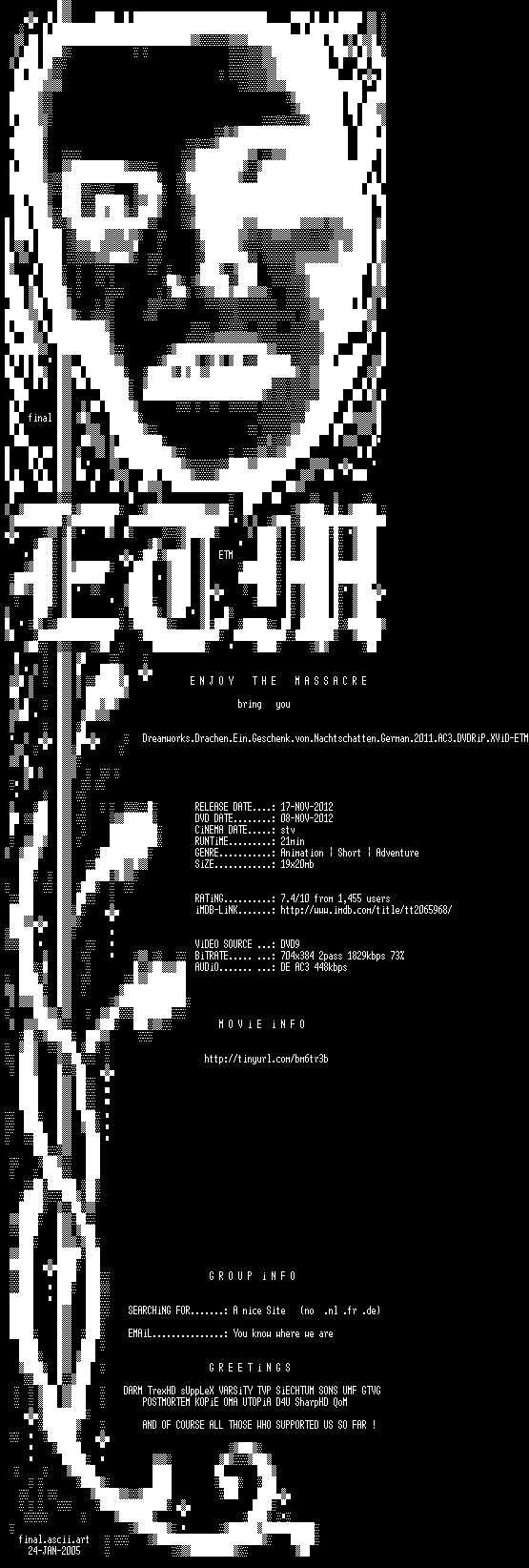 | FiLENAME: | Dreamworks.Drachen.Ein.Geschenk.von.Nachtschatten.German.2011.AC3.DVDRiP.XViD-ETM.avi |