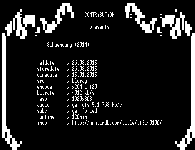 | FiLENAME: | Schaendung.2014.German.1080p.BluRay.x264-CONTRiBUTiON.mkv |