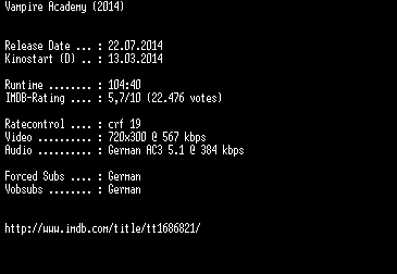 | FiLENAME: | Vampire.Academy.German.BDRiP.x264-EXQUiSiTE.mkv |