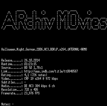 | FiLENAME: | Halloween.Night.German.2006.AC3.BDRiP.x264.iNTERNAL-ARMO.mkv |