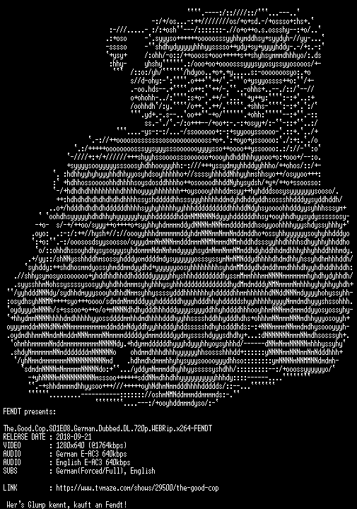 | FiLENAME: | The.Good.Cop.S01E08.German.Dubbed.DL.720p.WEBRip.x264-FENDT.mkv |