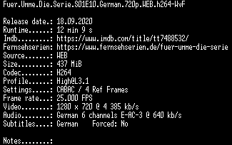 | FiLENAME: | Fuer.Umme.Die.Serie.S01E10.German.720p.WEB.h264-WvF.mkv |