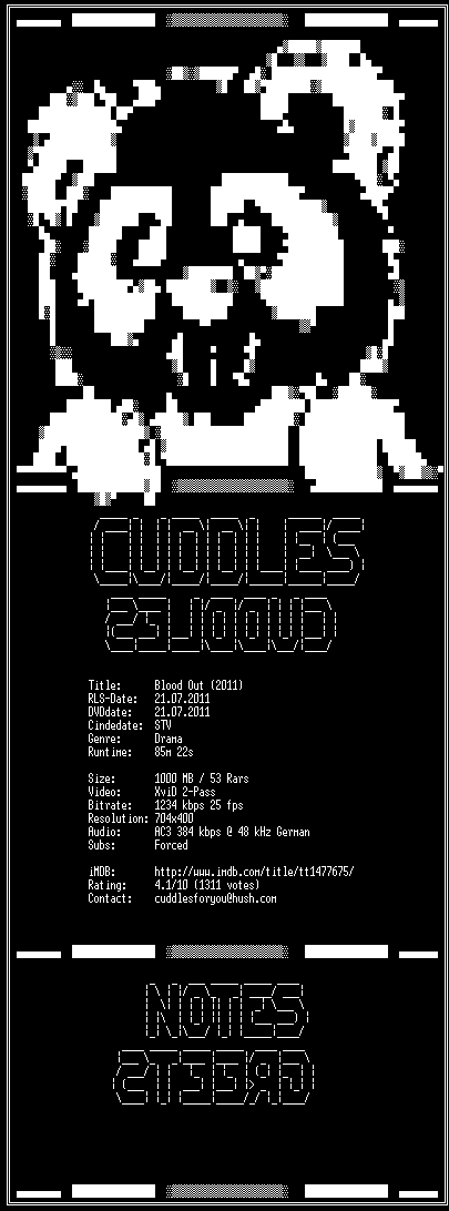 | FiLENAME: | Blood.Out.German.2011.AC3.DVDRip.XviD-CUDDLES.avi |
