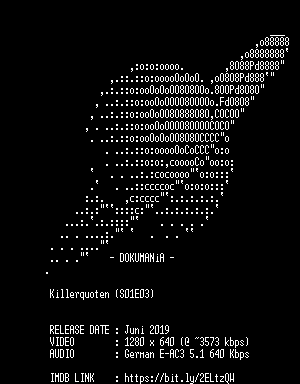 | FiLENAME: | Killerquoten.S01E03.German.DOKU.720p.WebHD.x264-DOKUMANiA.mkv |