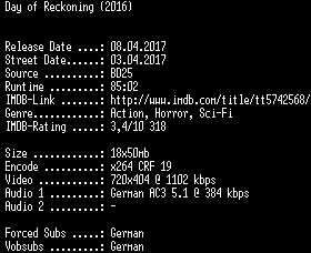 | FiLENAME: | Day.of.Reckoning.German.2016.AC3.BDRip.x264-SPiCY.mkv |