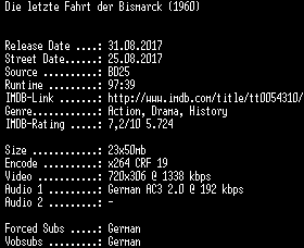 | FiLENAME: | Die.letzte.Fahrt.der.Bismarck.German.REMASTERED.1960.AC3.BDRip.x264-SPiCY.mkv |