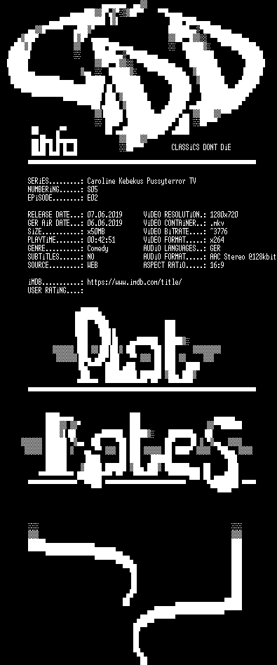 | FiLENAME: | Carolin.Kebekus.PussyTerror.TV.S05E02.GERMAN.720p.WEB.x264-CDD.mkv |