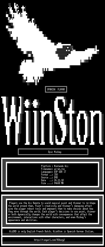 | FiLENAME: | Epic.Mickey.PAL.MULTi3.Wii-WiinSton.iso |