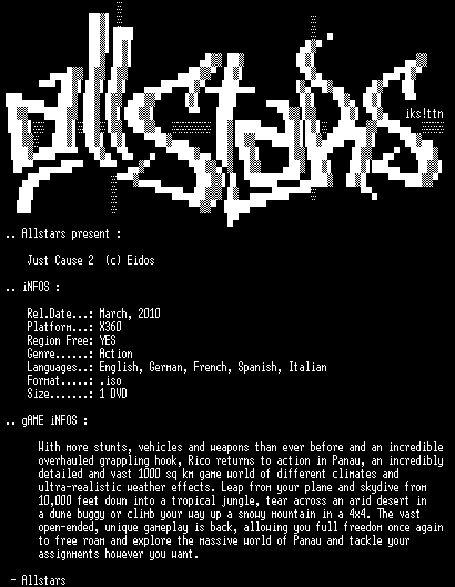 | FiLENAME: | Just.Cause.2.X360-Allstars.iso |