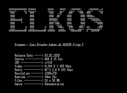| FiLENAME: | Wingmen.-.Zwei.Brueder.heben.ab.S01E05.Folge.5.GERMAN.DOKU.720p.WebHD.x264-ELKOS.mkv |