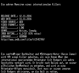 | FiLENAME: | Die.wahren.Memoiren.eines.internationalen.Killers.2016.German.DL.AC3D.1080p.WebHD.x264-SLG.mkv |
