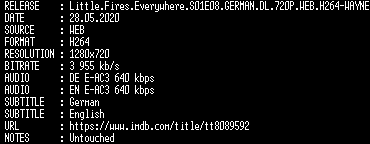 | FiLENAME: | Little.Fires.Everywhere.S01E08.GERMAN.DL.720P.WEB.H264-WAYNE.mkv |