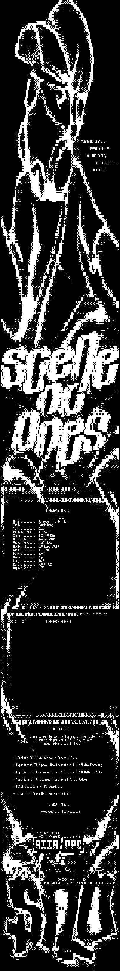| FiLENAME: | Dorrough_Ft_Tum_Tum-Truck_Bang-DVDRip-x264-2010-SNO.mkv |