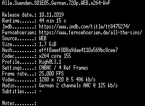 | FiLENAME: | Alle.Suenden.S01E05.German.720p.WEB.x264-WvF.mkv |