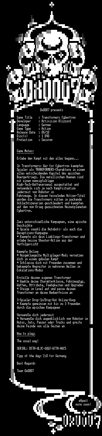 | FiLENAME: | Transformers.Kampf.um.Cybertron.GERMAN-0x0007.iso |