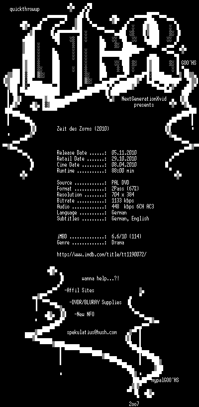 | FiLENAME: | Zeit.des.Zorns.German.2010.AC3.DVDRiP.XViD-NGX.avi |
