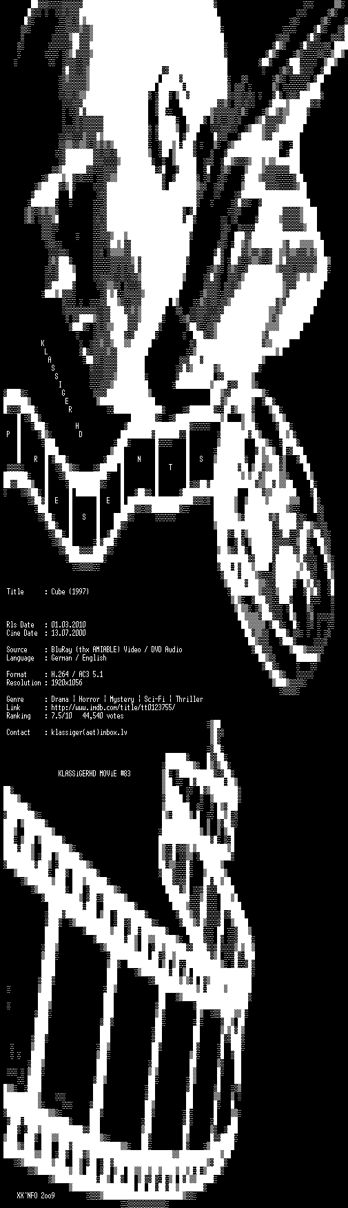 | FiLENAME: | Cube.1997.German.AC3D.DL.1080p.BluRay.x264-KLASSiGERHD.mkv |