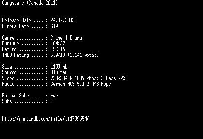 | FiLENAME: | Gangsters.German.2011.AC3.BDRiP.XViD-EXQUiSiTE.avi |
