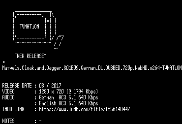 | FiLENAME: | Marvels.Cloak.and.Dagger.S01E09.German.DL.DUBBED.720p.WebHD.x264-TVNATiON.mkv |