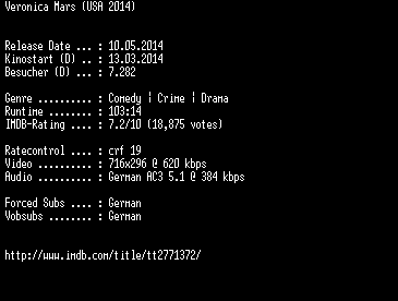 | FiLENAME: | Veronica.Mars.German.DVDRiP.x264-EXQUiSiTE.mkv |