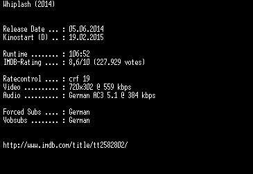 | FiLENAME: | Whiplash.German.2014.BDRiP.x264-EXQUiSiTE.mkv |