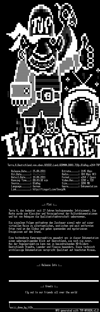 | FiLENAME: | Terra.X.Deutschland.von.oben.S01E03.Fluss.GERMAN.DOKU.720p.BluRay.x264-TVP.mkv |