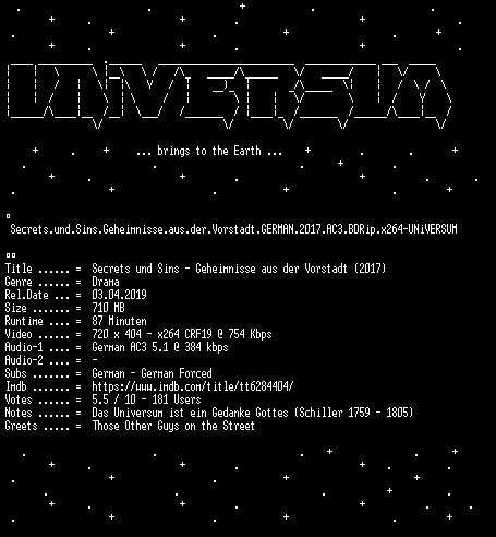| FiLENAME: | Secrets.und.Sins.Geheimnisse.aus.der.Vorstadt.GERMAN.2017.AC3.BDRip.x264-UNiVERSUM.mkv |