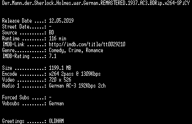 | FiLENAME: | Der.Mann.der.Sherlock.Holmes.war.German.REMASTERED.1937.AC3.BDRip.x264-SPiCY.mkv |