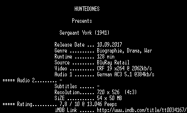 | FiLENAME: | Sergeant.York.German.REMASTERED.1941.AC3.BDRip.x264-HUNTEDONES.mkv |