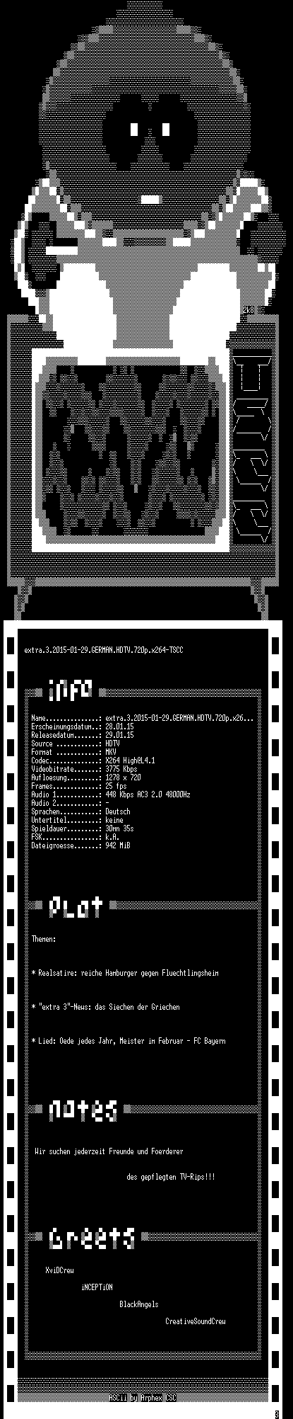 | FiLENAME: | extra.3.2015-01-29.GERMAN.HDTV.720p.x264-TSCC.mkv |