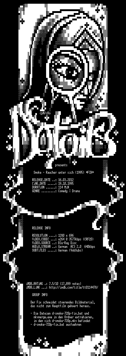 | FiLENAME: | Smoke.Raucher.unter.sich.1995.German.720p.BluRay.x264-DETAiLS.mkv |