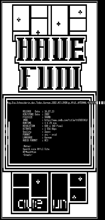 | FiLENAME: | May.Die.Schneiderin.des.Todes.German.2002.AC3.DVDRip.XViD.iNTERNAL-HaVeFuN.avi |