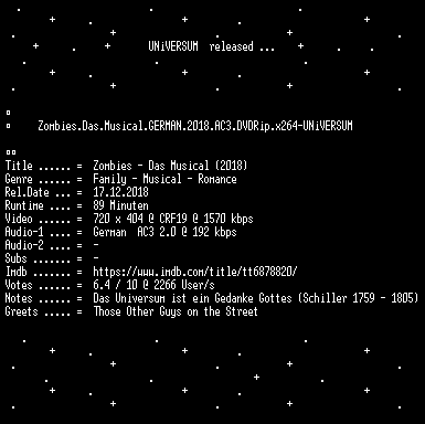 | FiLENAME: | Zombies.Das.Musical.GERMAN.2018.AC3.DVDRip.x264-UNiVERSUM.mp4 |