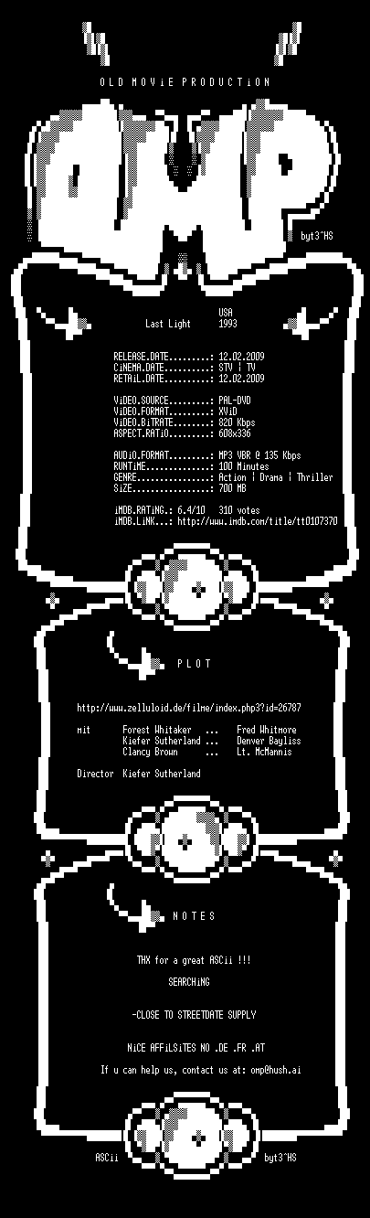 | FiLENAME: | Last Light (1993) [GER WS DVD].avi |