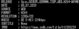 | FiLENAME: | Spin.S03E05.GERMAN.720P.WEB.H264-WAYNE.mkv |