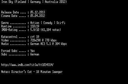 | FiLENAME: | Iron.Sky.DC.German.BDRiP.x264-EXQUiSiTE.mkv |