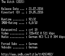 | FiLENAME: | The.Witch.German.2015.AC3.BDRip.x264-COiNCiDENCE.mkv |