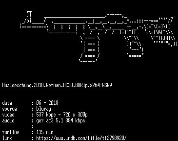 | FiLENAME: | Ausloeschung.2018.German.AC3D.BDRip.x264-GSG9.mkv |