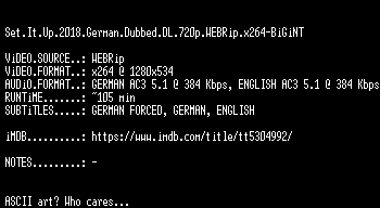 | FiLENAME: | Set.It.Up.2018.German.Dubbed.DL.720p.WEBRip.x264-BiGiNT.mkv |